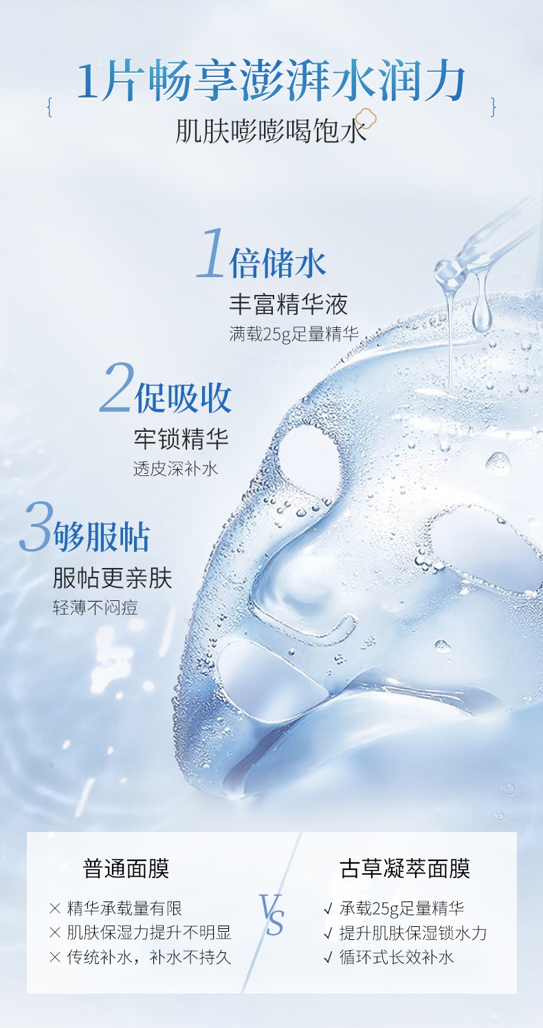 干澀皮膚的解渴工具,優(yōu)選古草凝萃透明質(zhì)酸鈉保濕貼!