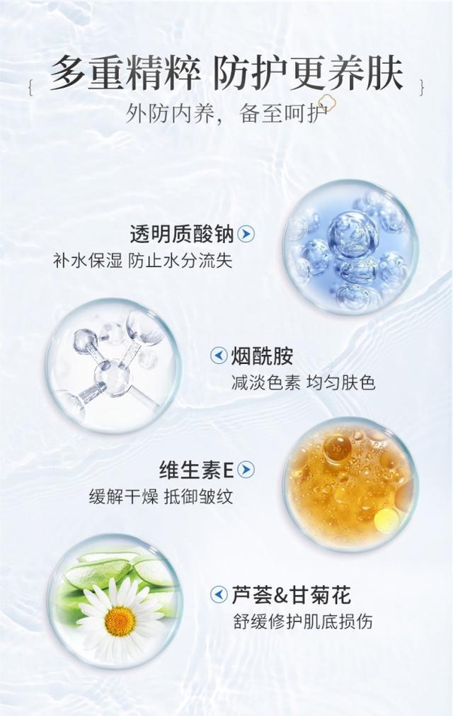 早晨用完精華后無需再上乳液或面霜,直接上防曬噴霧,后續(xù)底妝會非常服帖,直接省去了妝前乳,等于省了一個億!那么在日常的防曬里,我們都可以做些什么呢?除了用遮陽傘和防曬衣,有效的就是用這款古草凝萃防曬噴霧,打造素顏美肌,美白、補水、防曬、隔離,有效滋養(yǎng)呵護肌膚,讓你安安心心玩轉(zhuǎn)夏日。