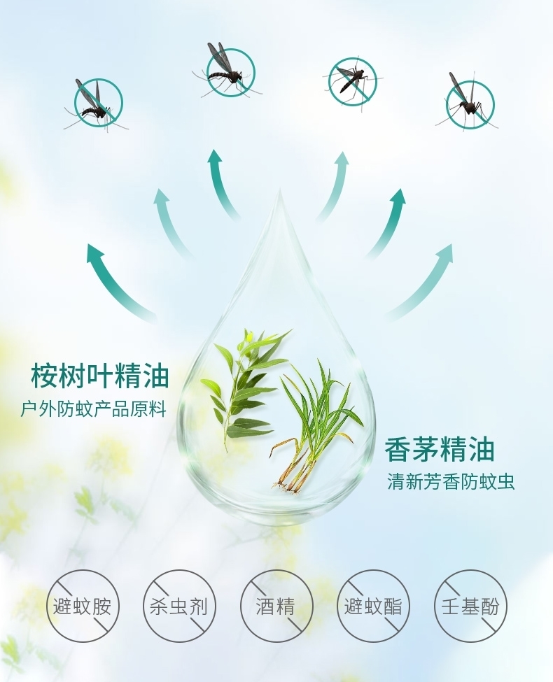 古草凝萃蚊痱噴霧主要含兩種天然植物精油驅(qū)蚊配方,溫和不刺激,讓蚊蟲不敢近你的身,