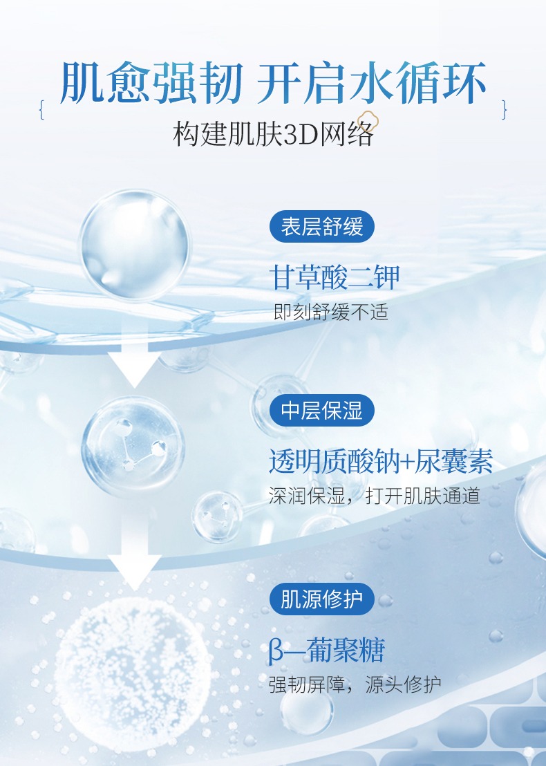 此外,古草凝萃透明質(zhì)酸鈉保濕貼還嚴(yán)選了以下三種醫(yī)藥級(jí)成分(甘草酸二鉀+尿囊素+β-葡聚糖),能構(gòu)建肌膚補(bǔ)水3D網(wǎng)絡(luò),開啟肌膚水循環(huán)!