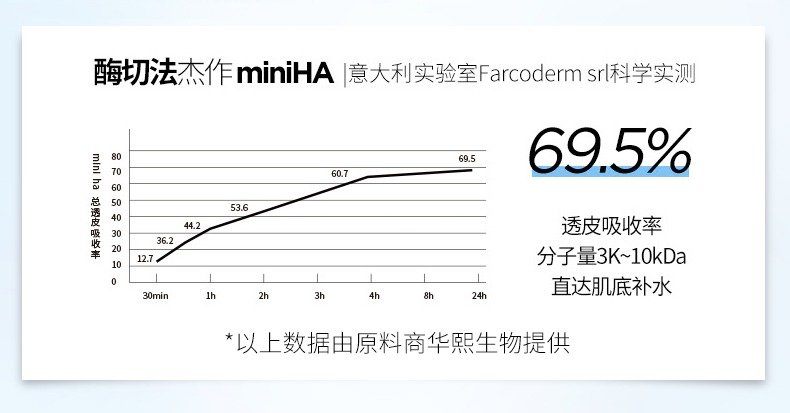 更重要的是運(yùn)用了酶切法,能直達(dá)肌底層補(bǔ)水并鎖住水分,透皮吸收率高達(dá)69.5%,達(dá)到真正補(bǔ)水的效果!