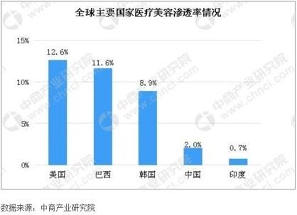 而醫(yī)美行業(yè)在歐美發(fā)達國家市場滲透率達12.6%,而中國市場滲透率只有2.0%,市場空間大,市場前景非常好!
