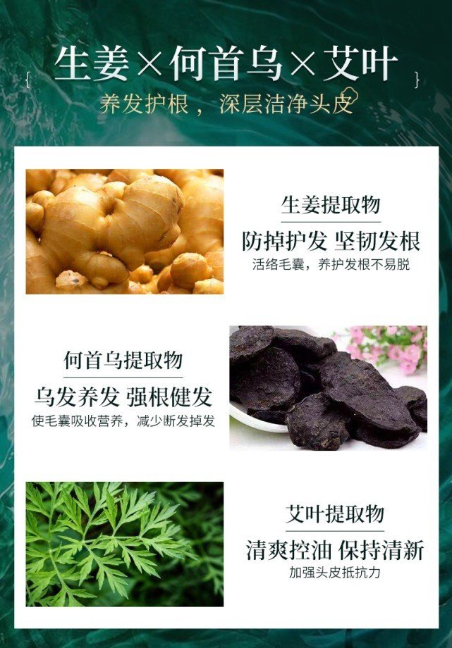 這款古草凝萃生姜洗發(fā)水的成分是極其精簡(jiǎn)的,不添加硅油等損壞發(fā)質(zhì)的成分。其中包括有生姜、何首烏、艾葉,能起到養(yǎng)發(fā)護(hù)根,深層潔凈頭皮的功效。