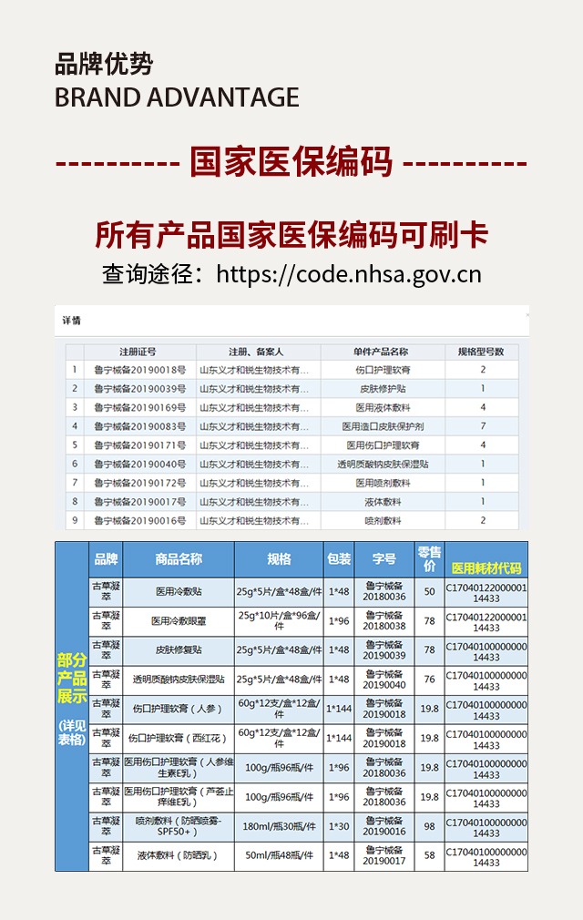 賣點(diǎn)二:古草凝萃旗下**產(chǎn)品均有國家醫(yī)保編碼,并可刷醫(yī)?!