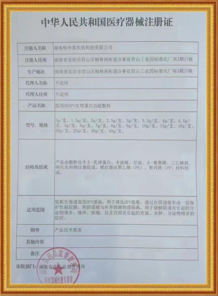 那么,湖南銀華棠醫(yī)藥科技有限公司旗下的醫(yī)用抗HPV生物蛋白功能敷料如何呢?