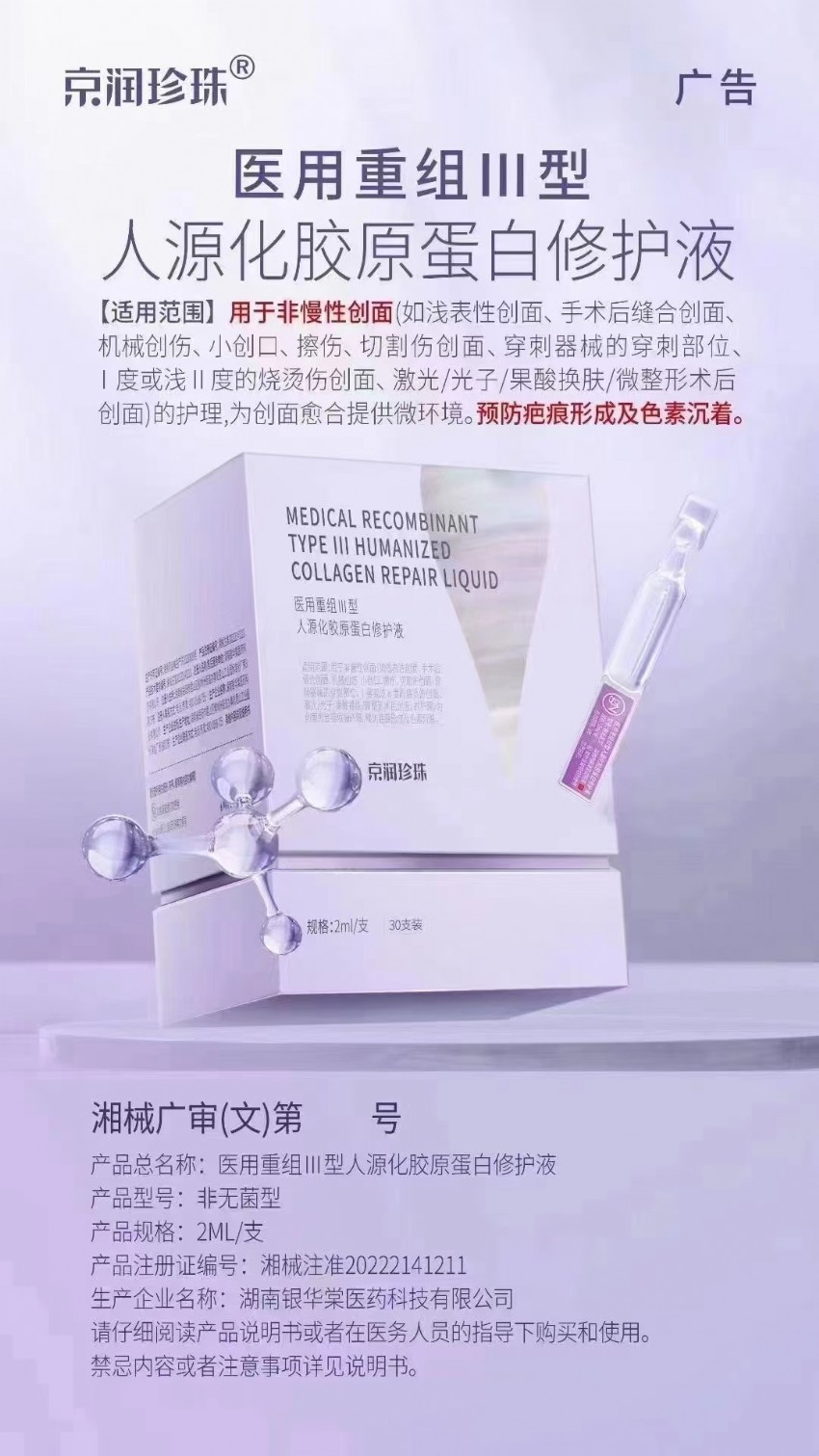 湖南銀華棠于2023年重磅推出“醫(yī)用重組III型人源化膠原蛋白系列”修復(fù)液-修復(fù)凝膠-修復(fù)貼,二類(lèi)醫(yī)療器械,資質(zhì)齊全,著力打造安心、可靠、長(zhǎng)效的高科技美膚產(chǎn)品!