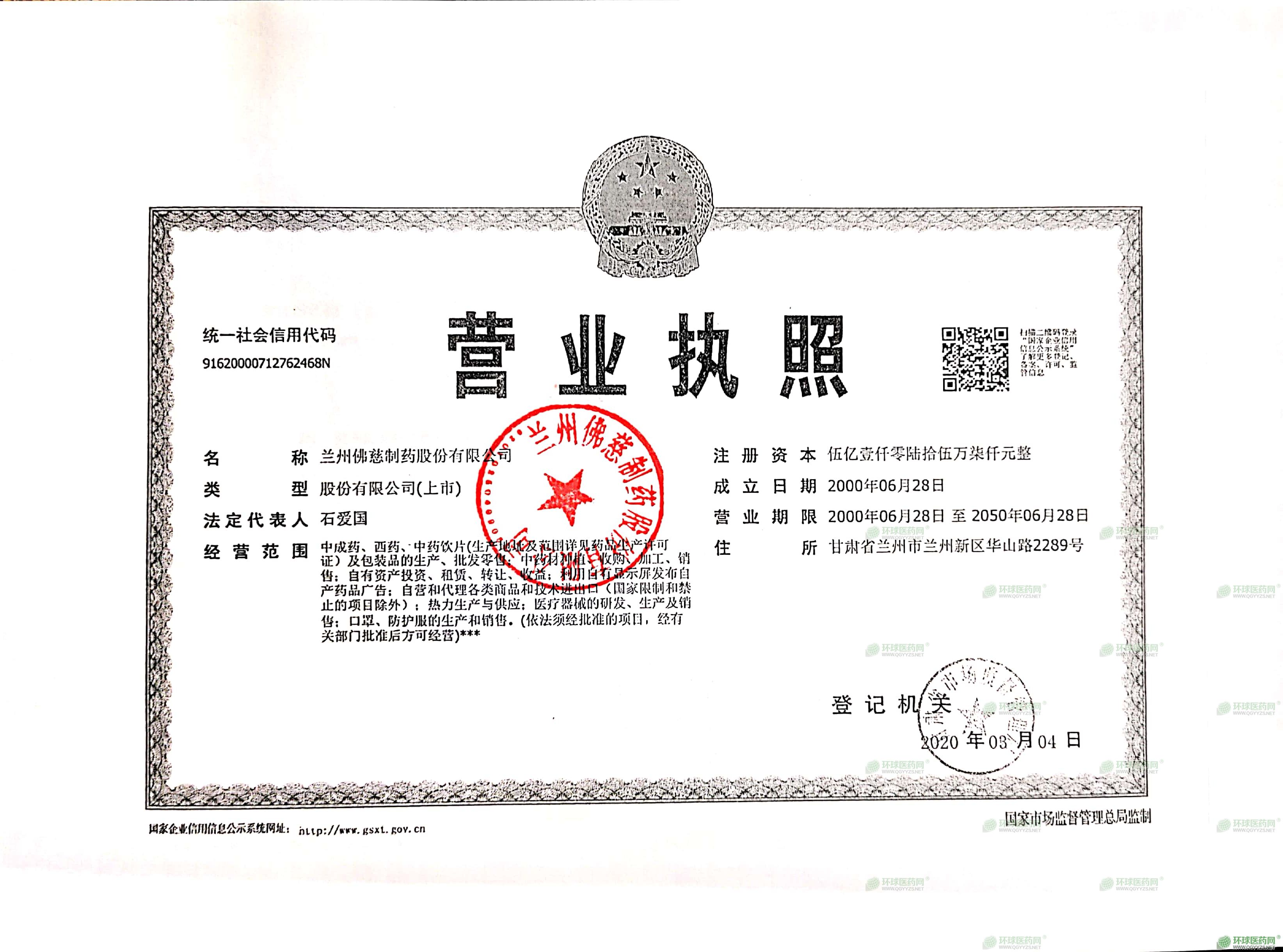蘭州佛慈制藥股份有限公司是一家具有89年制藥歷史的市屬國有控股上市公司和“中華***”企業(yè),1929年創(chuàng)建于上海,1956年西遷蘭州,2011年在深交所**上市。目前,公司已發(fā)展成為集中藥材種植與加工、天然藥物與保健品研發(fā)、中藥現代劑型及保健食品生產銷售為一體的西北地區(qū)中醫(yī)藥行業(yè)的骨干企業(yè)。