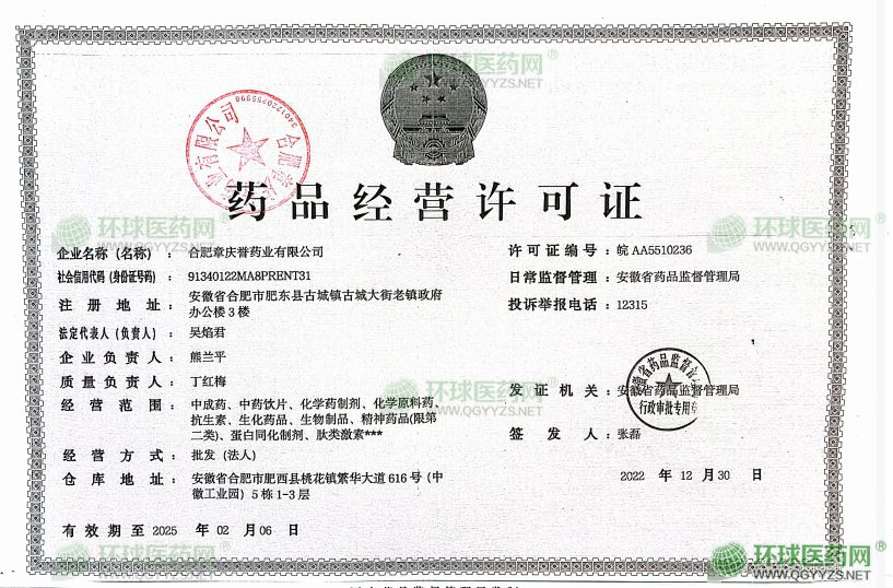 合肥章慶譽(yù)藥業(yè)有限公司