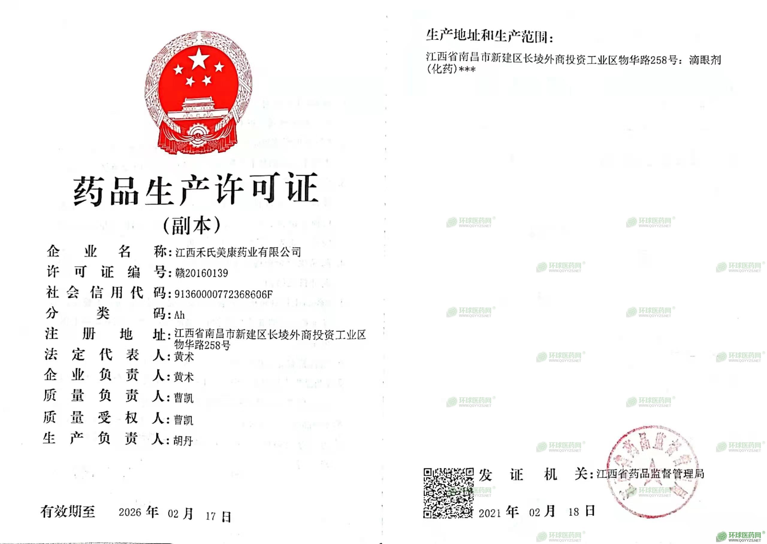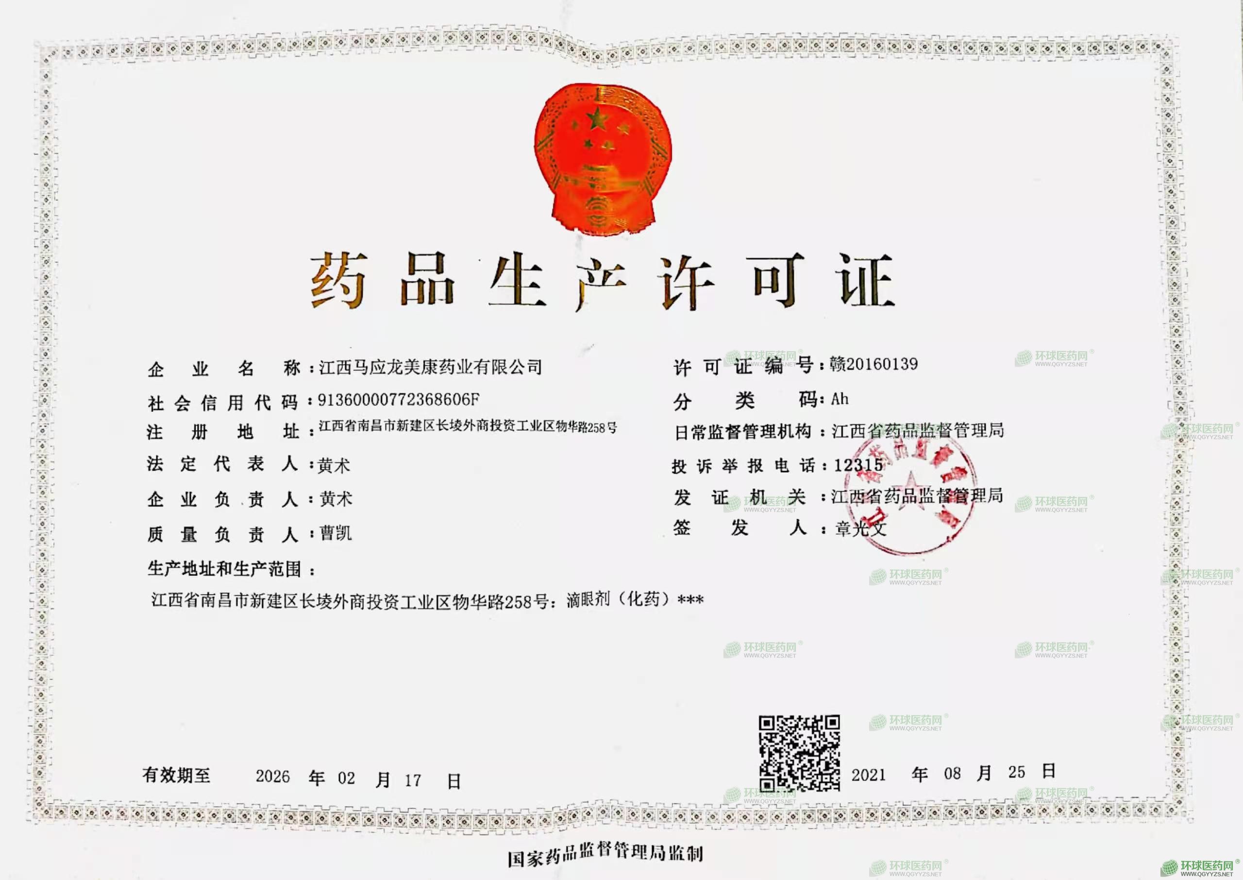 發(fā)證機(jī)關(guān): 江西省藥品監(jiān)督管理局