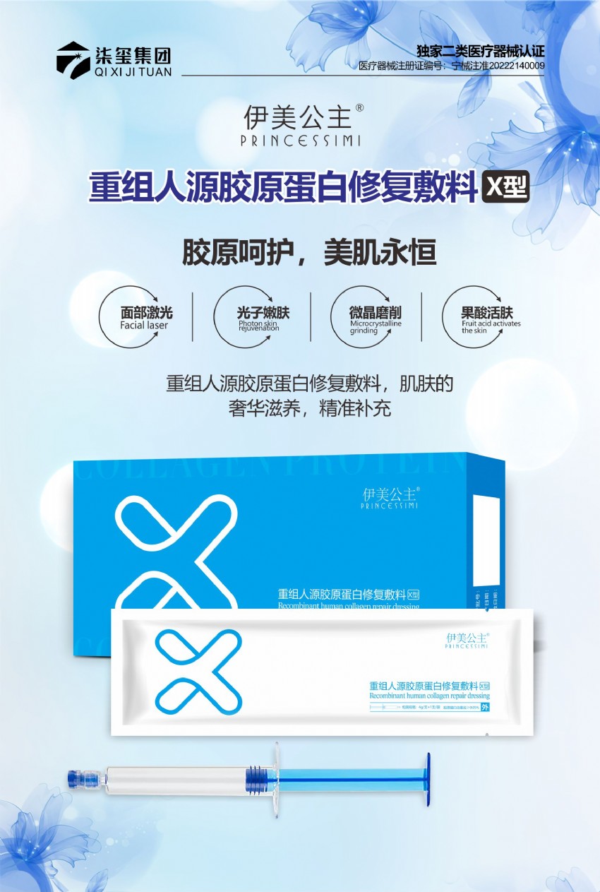 二、產(chǎn)品名稱:伊美公主(重組人源膠原蛋白修復敷料X型)