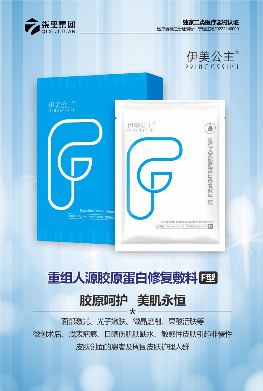 一、產(chǎn)品名稱:伊美公主(重組人源膠原蛋白修復敷料F型)
