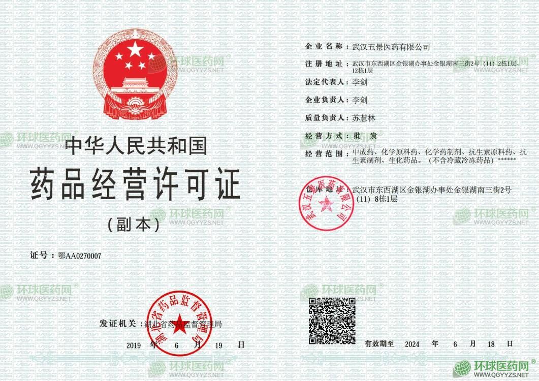 生產(chǎn)范圍: 1、湖北省武漢市東西湖區(qū)金銀湖辦事處金銀湖南三街2號; 滴眼劑(含激素類)、滴耳劑、滴鼻劑(含藥品類易制毒化學(xué)藥品)、灌腸劑、搽劑、涂劑、酊劑、片劑、硬膠囊劑、顆粒劑、錠劑、原料藥(含中藥提取車間)。***2、委托方:武漢五景醫(yī)藥科技有限公司;注冊地址:武漢市東西湖區(qū)鑫橋高科技產(chǎn)業(yè)園南區(qū)五景路1號2棟1-3層3層;生產(chǎn)范圍:滴眼劑。***