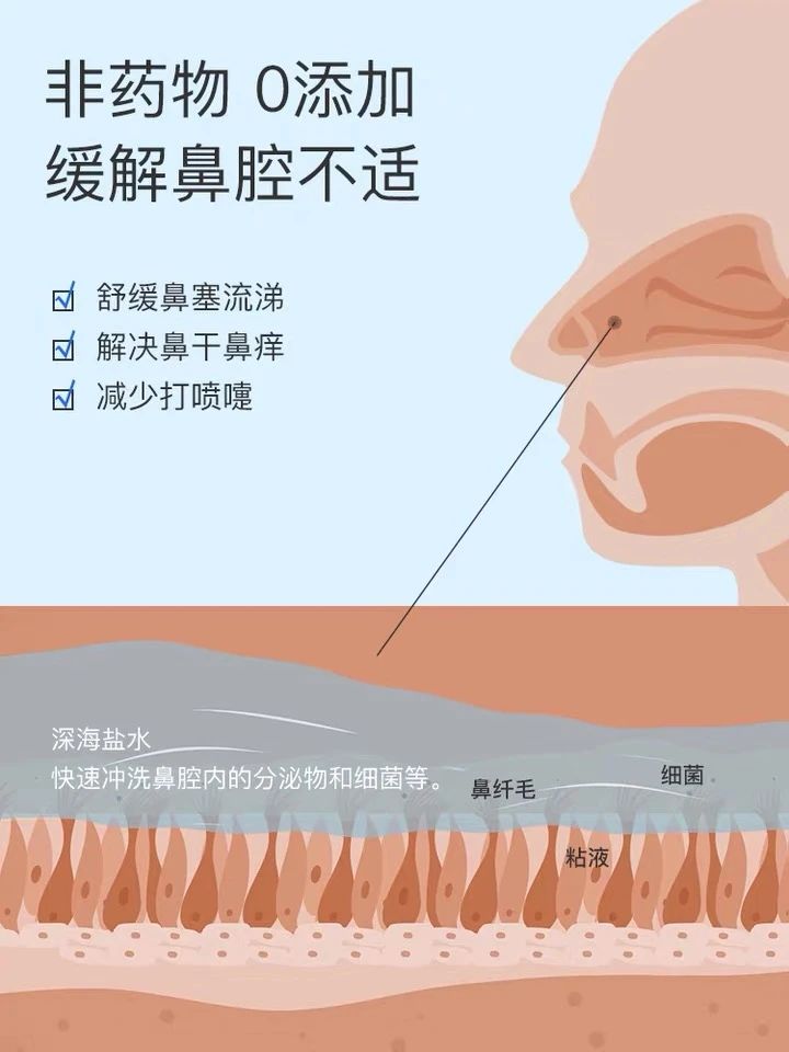 鼻孔發(fā)癢:正常的鼻孔受到污染空氣的刺激或空氣干燥時,容易引起鼻孔發(fā)癢和發(fā)干。用生理性海水鼻腔噴霧濕潤鼻腔,可有效緩解癥狀。