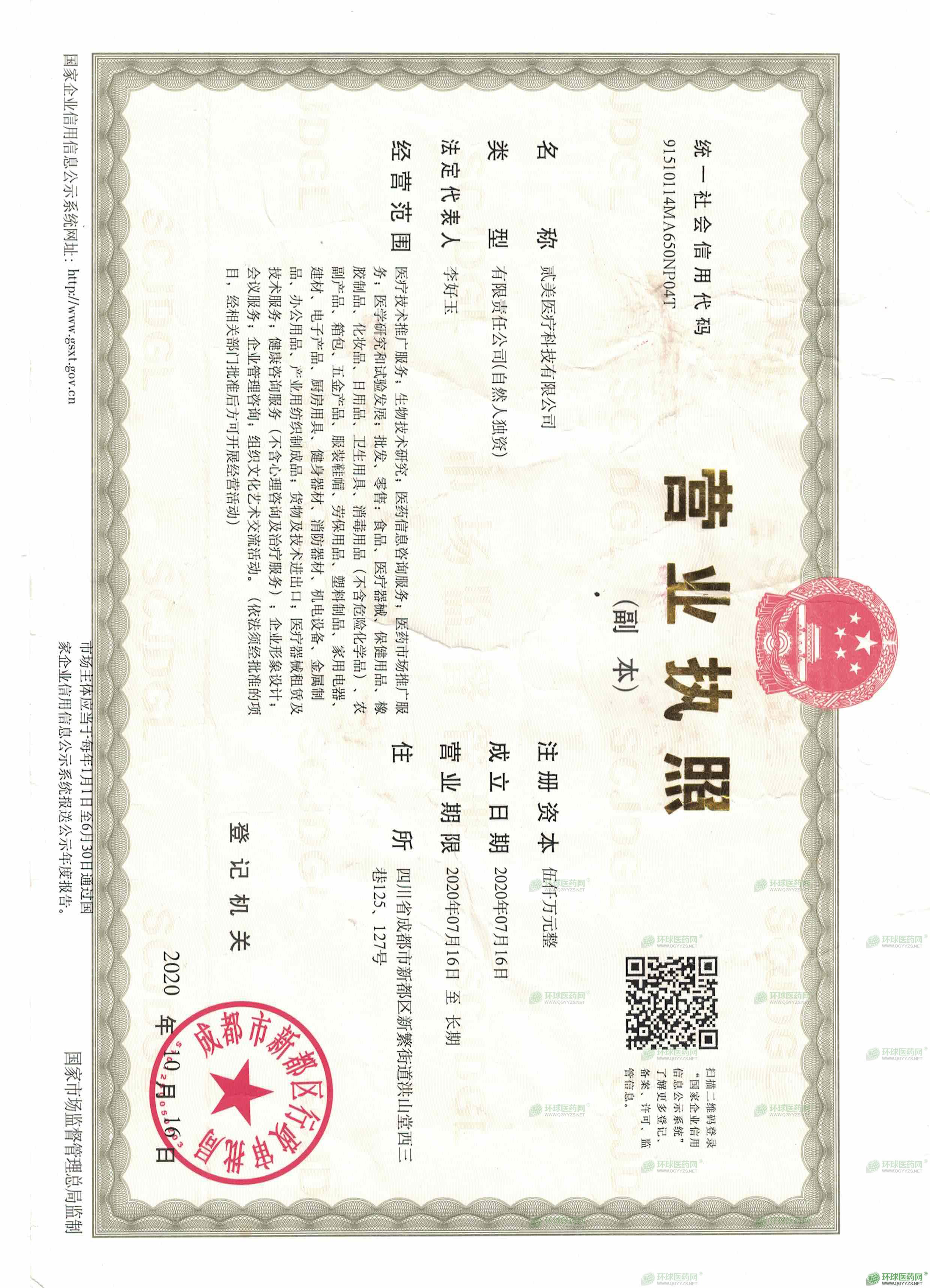 • 企業(yè)法人營業(yè)執(zhí)照