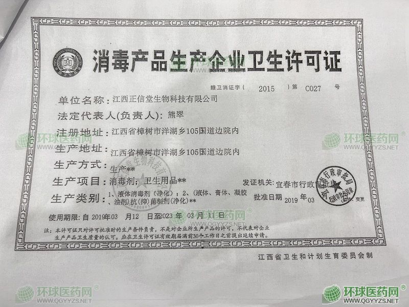 - 消毒產(chǎn)品生產(chǎn)企業(yè)衛(wèi)生許可證