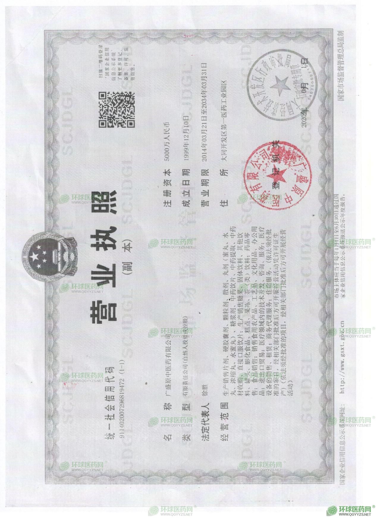 其前身為1956年公私合營的大同中藥廠,2019年10月25日,全國中醫(yī)藥大會在北京召開,習近平主席、李克強總理對中醫(yī)藥發(fā)展作出重要指示和批示,中共中央、國務(wù)院發(fā)布關(guān)于促進中醫(yī)藥傳承創(chuàng)新發(fā)展的意見。同日,經(jīng)國家市場監(jiān)督管理總局批準,公司正式盛世重光為“廣盛原中醫(yī)藥有限公司”,成為國內(nèi)一家由中藥廠升級為全國性“中醫(yī)藥”公司的企業(yè)。