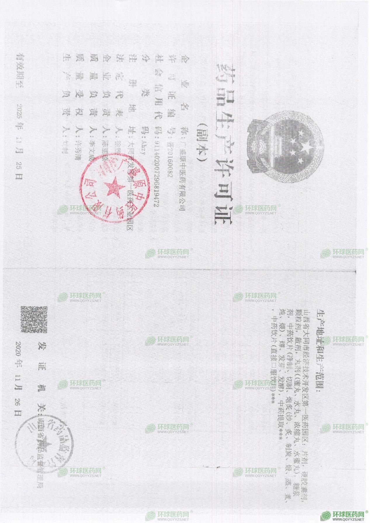 許可證號: 晉20160082