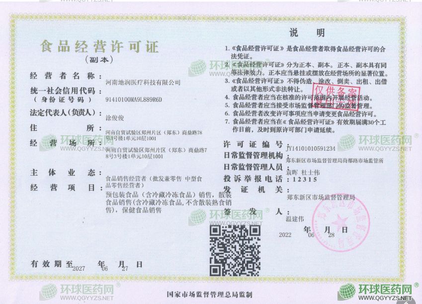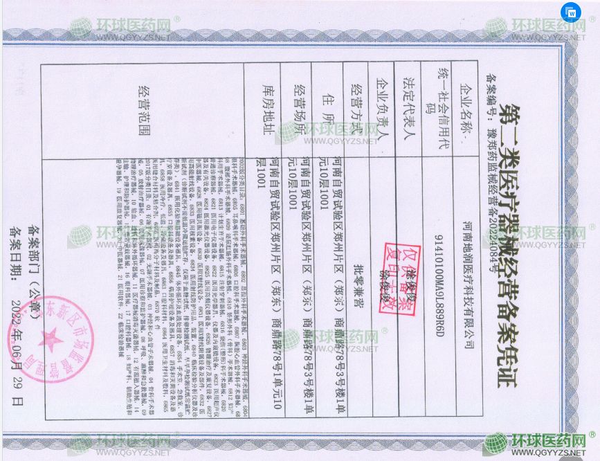 河南地潤醫(yī)療科技有限公司成立于2022年05月17日,注冊地位于河南自貿(mào)試驗區(qū)鄭州片區(qū)(鄭東)商鼎路78號3號樓1單元10層1001,法定代表人為涂俊俊。經(jīng)營范圍包括一般項目:技術(shù)服務(wù)、技術(shù)開發(fā)、技術(shù)咨詢、技術(shù)交流、技術(shù)轉(zhuǎn)讓、技術(shù)推廣;**類醫(yī)療器械銷售;第二類醫(yī)療器械銷售;消毒劑銷售(不含危險化學(xué)品);衛(wèi)生用品和一次性使用醫(yī)療用品銷售;醫(yī)護人員防護用品批發(fā);醫(yī)護人員防護用品零售;專用設(shè)備修理;計算機軟硬件及輔助設(shè)備批發(fā);計算機軟硬件及輔助設(shè)備零售;計算機及辦公設(shè)備維修;信息系統(tǒng)運行維護服務(wù);廚具衛(wèi)具及日用雜品批發(fā);廚具衛(wèi)具及日用雜品零售;電子產(chǎn)品銷售;日用家電零售;日用電器修理;個人衛(wèi)生用品銷售;日用化學(xué)產(chǎn)品銷售;日用品批發(fā);日用品銷售;日用百貨銷售;辦公用品銷售;機械設(shè)備銷售;電子、機械設(shè)備維護(不含特種設(shè)備);儀器儀表銷售;包裝材料及制品銷售;保健食品(預(yù)包裝)銷售;食品銷售(僅銷售預(yù)包裝食品)(除依法須經(jīng)批準(zhǔn)的項目外,憑營業(yè)執(zhí)照依法自主開展經(jīng)營活動)許可項目:食品銷售(依法須經(jīng)批準(zhǔn)的項目,經(jīng)相關(guān)部門批準(zhǔn)后方可開展經(jīng)營活動,具體經(jīng)營項目以相關(guān)部門批準(zhǔn)文件或許可證件為準(zhǔn))