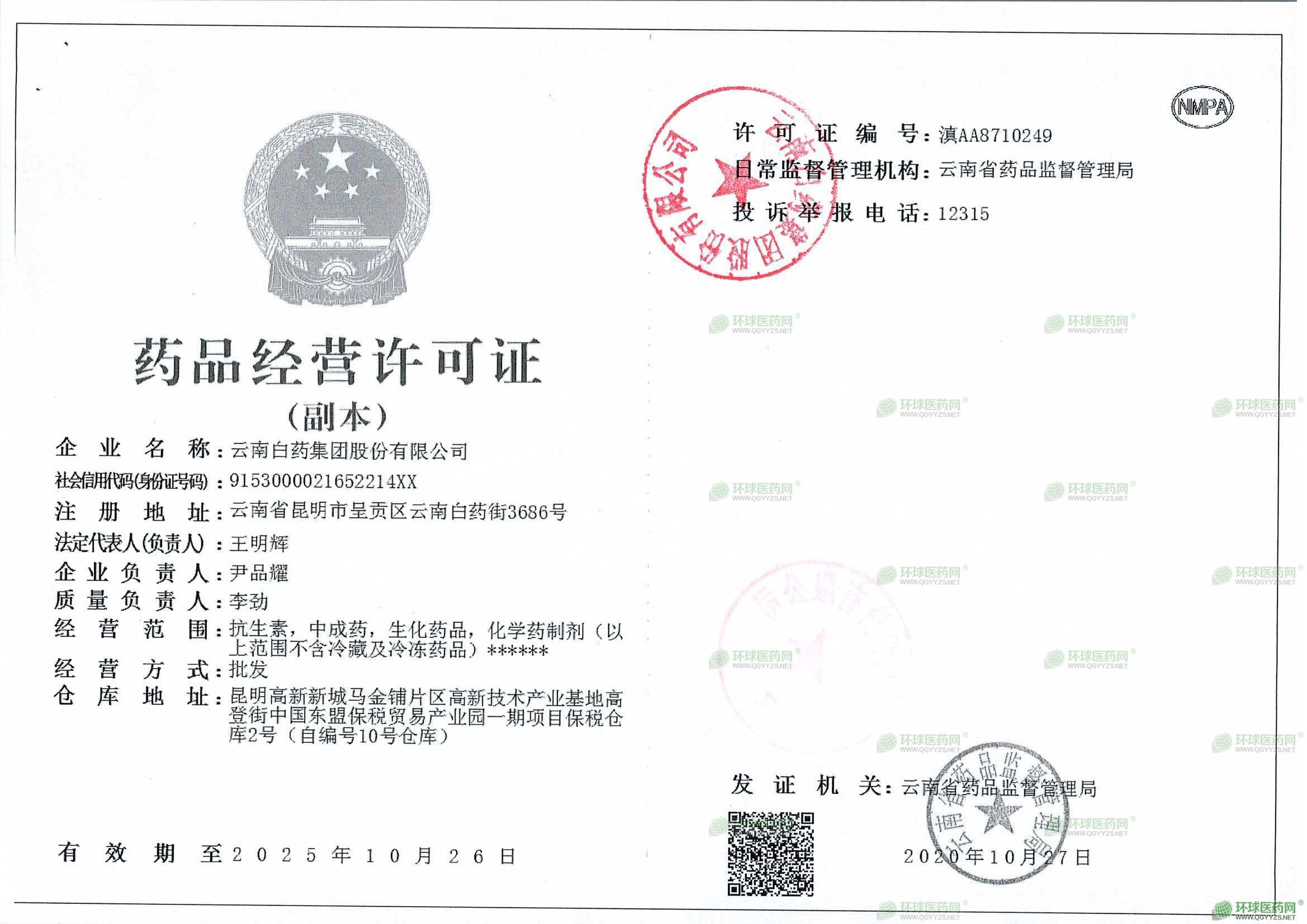 日常監(jiān)管機構(gòu): 云南省藥品監(jiān)督管理局