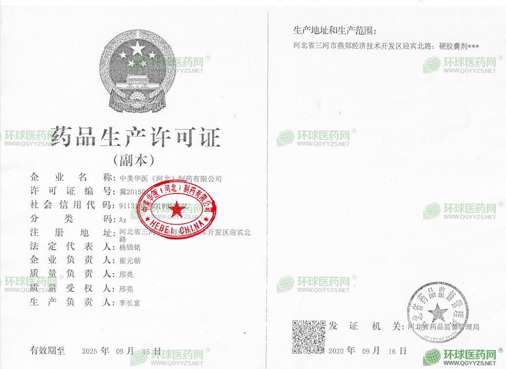 發(fā)證機關: 河北省藥品監(jiān)督管理局
