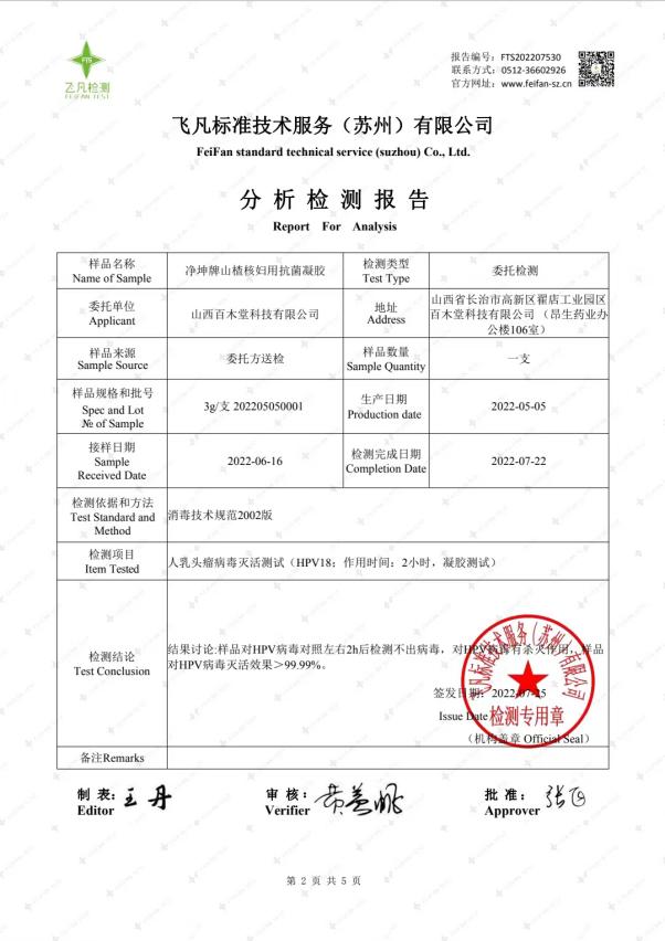 權(quán)威檢測(cè)報(bào)告支持的山楂核婦用抗菌凝膠
