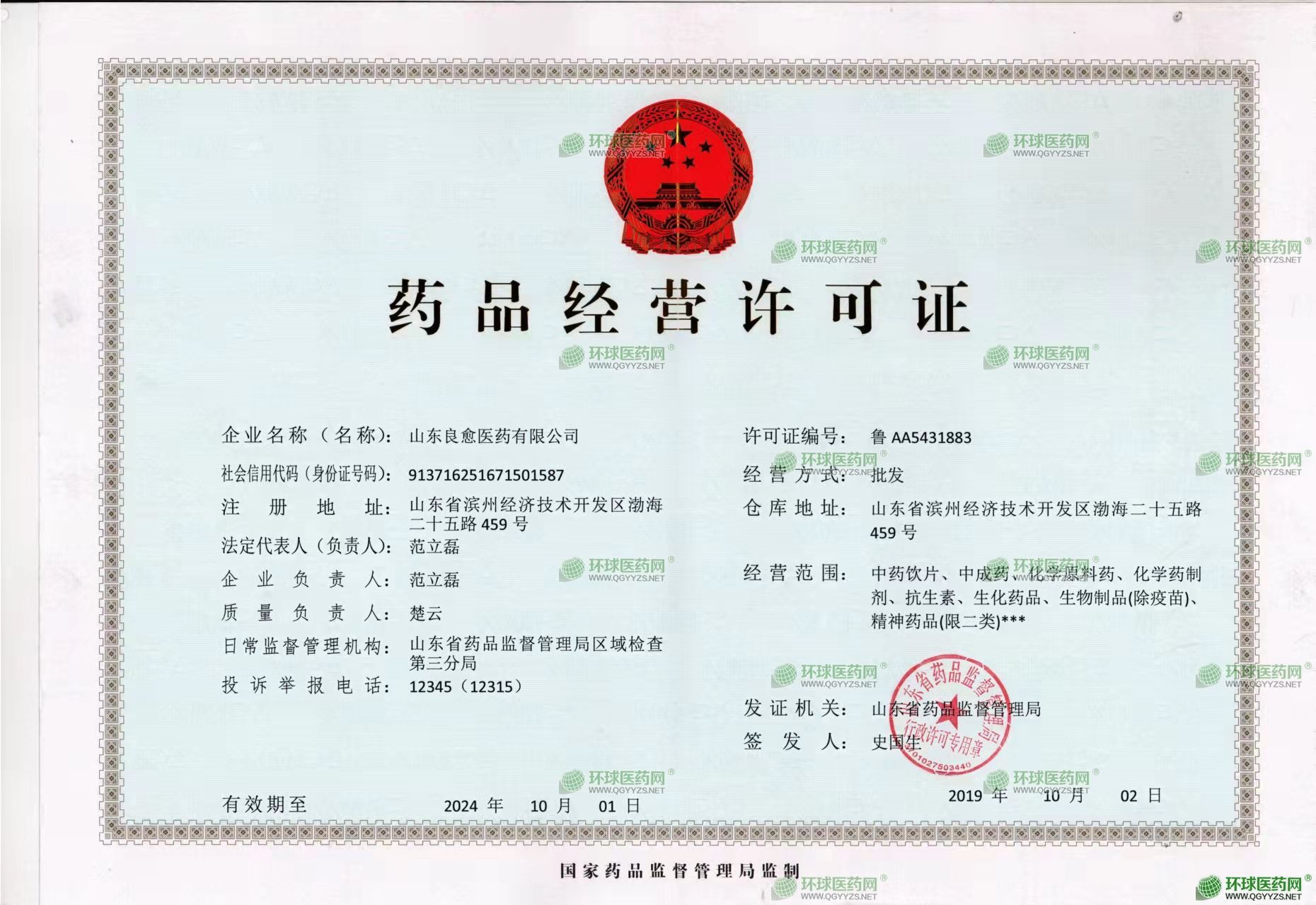 山東良愈醫(yī)藥有限公司成立于2001年10月08日,注冊(cè)地位于山東省濱州經(jīng)濟(jì)技術(shù)開發(fā)區(qū)渤海二十五路459號(hào),法定代表人為范立磊。經(jīng)營范圍包括許可項(xiàng)目:藥品批發(fā);第三類醫(yī)療器械經(jīng)營;食品銷售;道路貨物運(yùn)輸(不含危險(xiǎn)貨物);道路貨物運(yùn)輸(網(wǎng)絡(luò)貨運(yùn));藥品互聯(lián)網(wǎng)信息服務(wù)。(依法須經(jīng)批準(zhǔn)的項(xiàng)目,經(jīng)相關(guān)部門批準(zhǔn)后方可開展經(jīng)營活動(dòng),具體經(jīng)營項(xiàng)目以相關(guān)部門批準(zhǔn)文件或許可證件為準(zhǔn))一般項(xiàng)目:第二類醫(yī)療器械銷售;保健食品(預(yù)包裝)銷售;衛(wèi)生用品和一次性使用醫(yī)療用品銷售;日用百貨銷售;儀器儀表銷售;五金產(chǎn)品零售;普通貨物倉儲(chǔ)服務(wù)(不含危險(xiǎn)化學(xué)品等需許可審批的項(xiàng)目);低溫倉儲(chǔ)(不含危險(xiǎn)化學(xué)品等需許可審批的項(xiàng)目);非居住房地產(chǎn)租賃;廣告發(fā)布;廣告制作;技術(shù)服務(wù)、技術(shù)開發(fā)、技術(shù)咨詢、技術(shù)交流、技術(shù)轉(zhuǎn)讓、技術(shù)推廣;信息咨詢服務(wù)(不含許可類信息咨詢服務(wù))。(除依法須經(jīng)批準(zhǔn)的項(xiàng)目外,憑營業(yè)執(zhí)照依法自主開展經(jīng)營活動(dòng))山東良愈醫(yī)藥有限公司具有8處分支機(jī)構(gòu)。