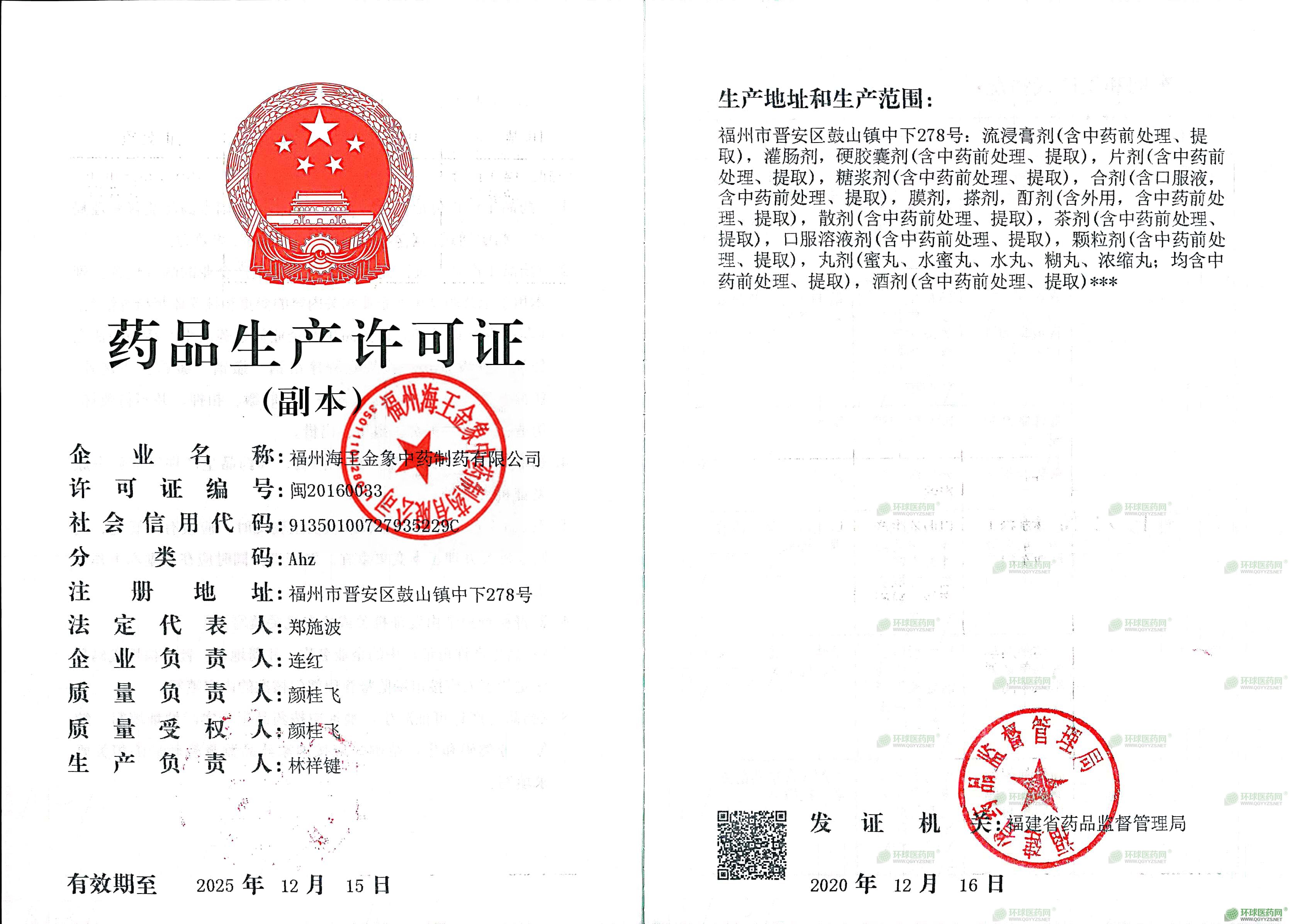 生產(chǎn)地址: 福州市晉安區(qū)鼓山鎮(zhèn)中下278號:顆粒劑,口服溶液劑,口服液,灌腸劑,膜劑,流浸膏劑,搽劑,茶劑,酊劑(含外用),片劑,硬膠囊劑,糖漿劑,合劑,丸劑(蜜丸、水蜜丸、水丸、濃縮丸、糊丸),散劑,酒劑***;