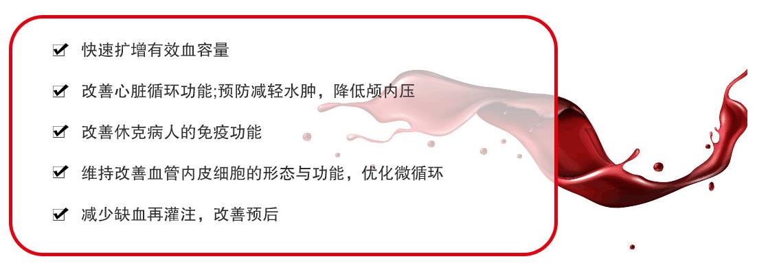 適應癥:應由醫(yī)生評估后,方可用于治療和預防血容量不足。不能替代血漿中的紅細胞或凝血因子。