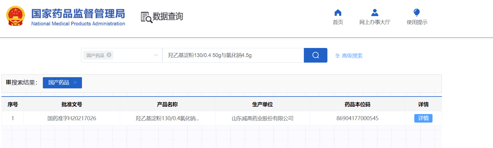 通用名稱:羥乙基淀粉130/0.4氯化鈉注射液
