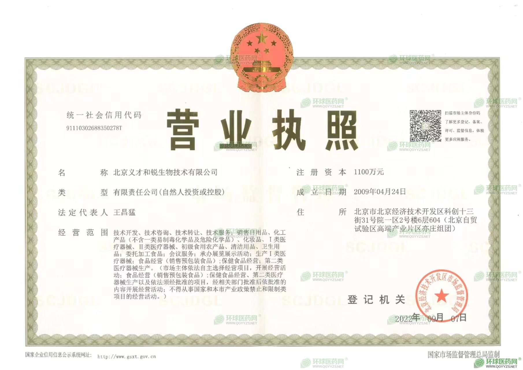 [注冊資金]:1100萬