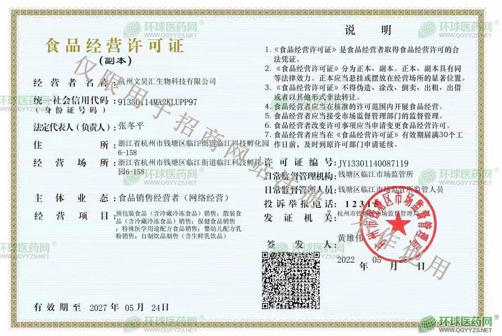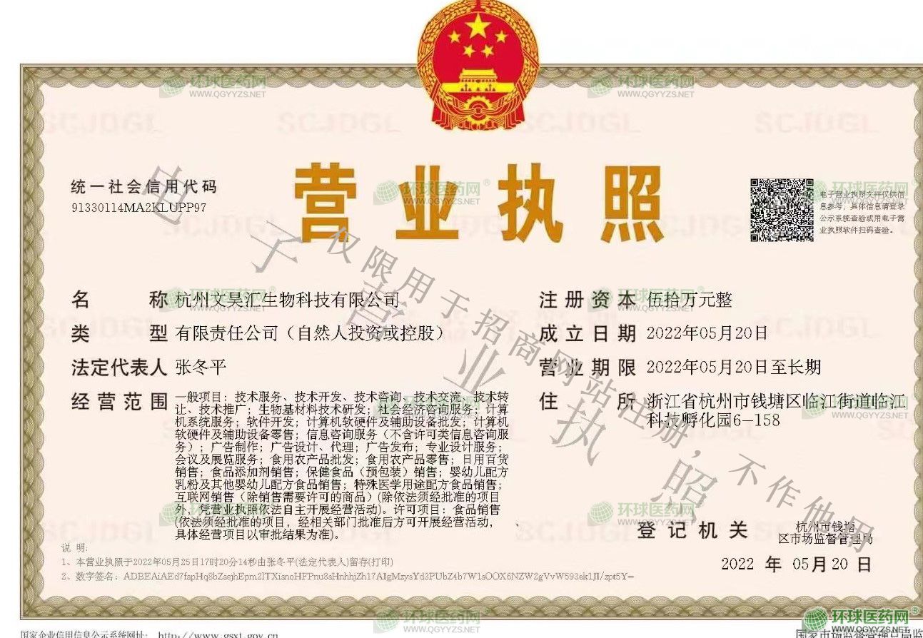 杭州文昊匯生物科技有限公司成立于2022年05月20日,注冊地位于浙江省杭州市錢塘區(qū)臨江街道臨江科技孵化園6-158,法定代表人為張冬平。經(jīng)營范圍包括一般項目:技術(shù)服務(wù)、技術(shù)開發(fā)、技術(shù)咨詢、技術(shù)交流、技術(shù)轉(zhuǎn)讓、技術(shù)推廣;生物基材料技術(shù)研發(fā);社會經(jīng)濟咨詢服務(wù);計算機系統(tǒng)服務(wù);軟件開發(fā);計算機軟硬件及輔助設(shè)備批發(fā);計算機軟硬件及輔助設(shè)備零售;信息咨詢服務(wù)(不含許可類信息咨詢服務(wù));廣告制作;廣告設(shè)計、代理;廣告發(fā)布;專業(yè)設(shè)計服務(wù);會議及展覽服務(wù);食用農(nóng)產(chǎn)品批發(fā);食用農(nóng)產(chǎn)品零售;日用百貨銷售;食品添加劑銷售;保健食品(預(yù)包裝)銷售;嬰幼兒配方乳粉及其他嬰幼兒配方食品銷售;特殊醫(yī)學(xué)用途配方食品銷售;互聯(lián)網(wǎng)銷售(除銷售需要許可的商品)(除依法須經(jīng)批準(zhǔn)的項目外,憑營業(yè)執(zhí)照依法自主開展經(jīng)營活動)。許可項目:食品銷售(依法須經(jīng)批準(zhǔn)的項目,經(jīng)相關(guān)部門批準(zhǔn)后方可開展經(jīng)營活動,具體經(jīng)營項目以審批結(jié)果為準(zhǔn))。