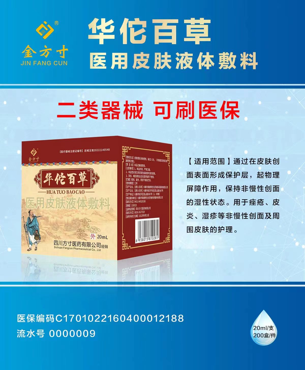 產(chǎn)品用途: 通過在皮膚創(chuàng)面表面形成保護(hù)層,起物理屏障作用,保持非慢性創(chuàng)面的濕性狀態(tài)。用于痤瘡、皮炎、濕疹等非慢性創(chuàng)面及周圍皮膚的護(hù)理。