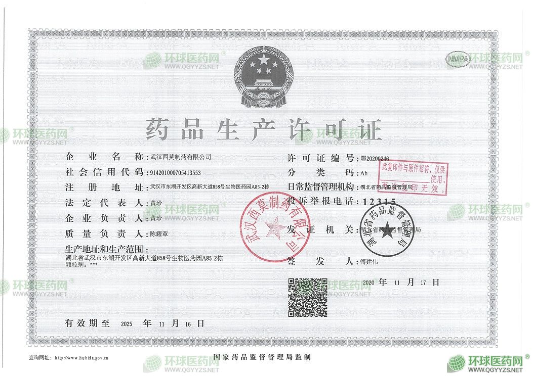 發(fā)證機(jī)關(guān): 湖北省藥品監(jiān)督管理局