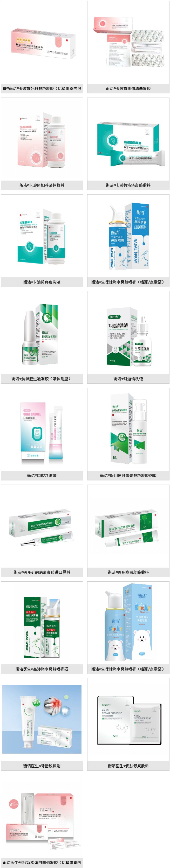 七維健康專注于人體體表皮膚及腔道黏膜創(chuàng)面損傷類醫(yī)療產(chǎn)品的開發(fā),致力于大健康生態(tài)圈建設(shè)和大健康服務(wù)體系建設(shè)。產(chǎn)品線涵蓋二類醫(yī)用衛(wèi)生材料、功能性敷料、醫(yī)用高分子材料及制品。衡潔品牌“卡波姆陰道凝膠、洗液“、“HPV卡波姆婦科凝膠敷料”、“卡波姆痔瘡凝膠、洗液”、“生理性海水”、“抗鼻腔過敏凝膠”、“口腔含漱液”、“耳道清洗液”、“醫(yī)用皮膚液體敷料”、“醫(yī)用硅酮疤痕凝膠”。合作形式為特定渠道代理制、區(qū)域代理制、OEM(貼牌)。