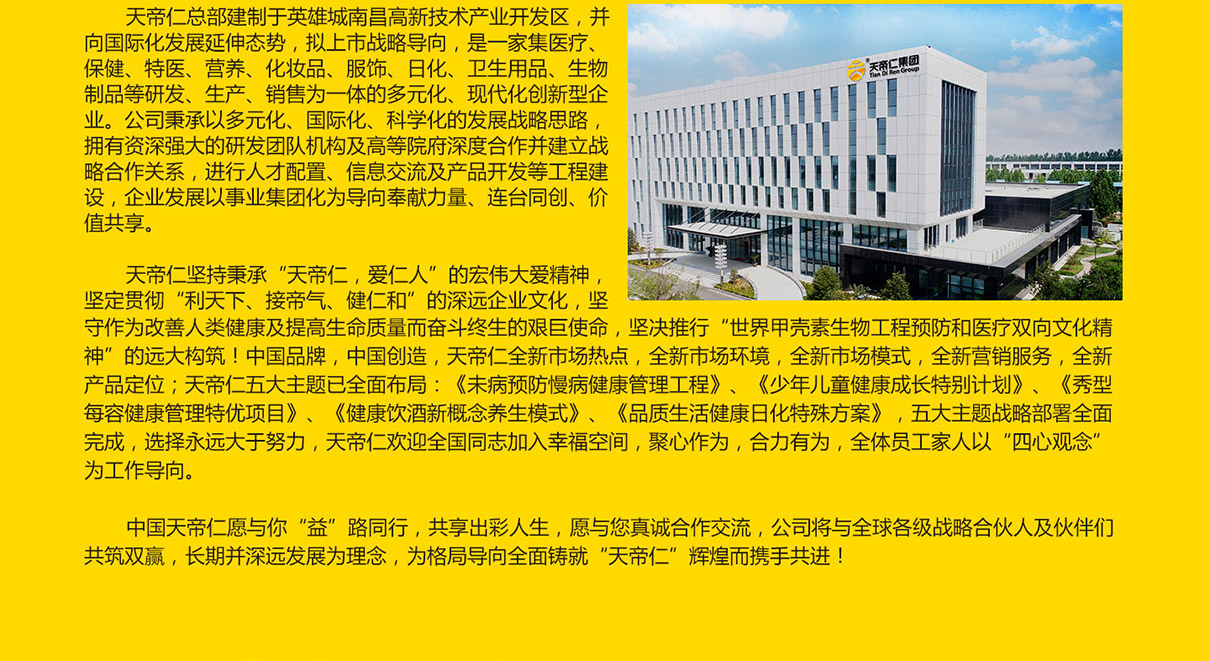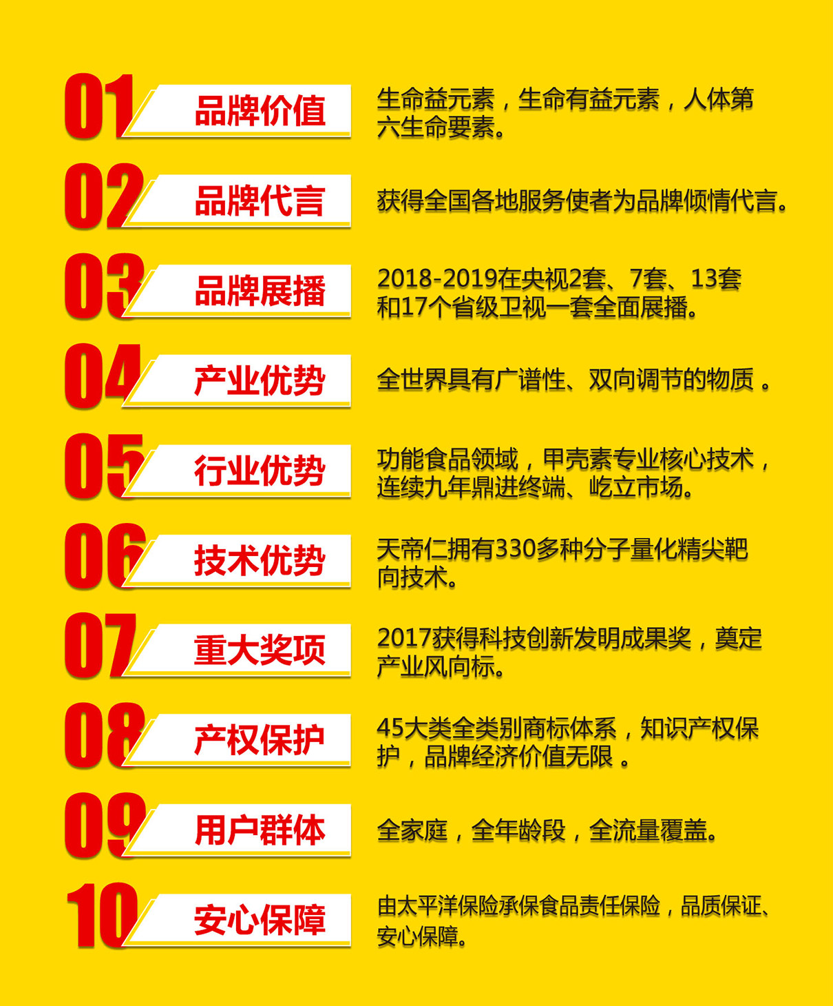 天帝仁集團順勢推出重磅產(chǎn)品——生命益元素®幾丁寡糖系列產(chǎn)品,是開拓新市場的剛需特色產(chǎn)品!