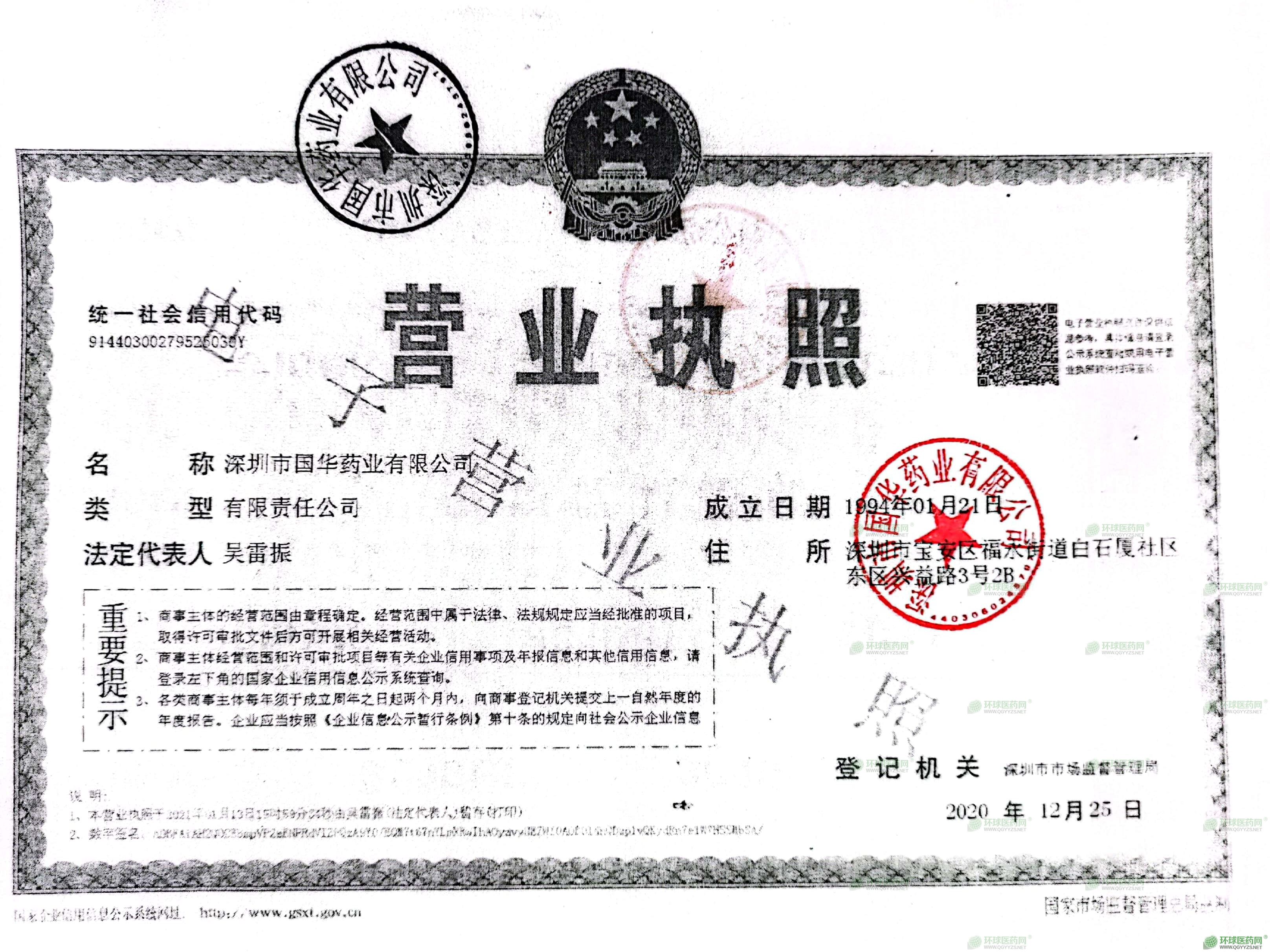 深圳市國華藥業(yè)有限公司是一家藥品批發(fā)企業(yè),成立于1994年01月21日
