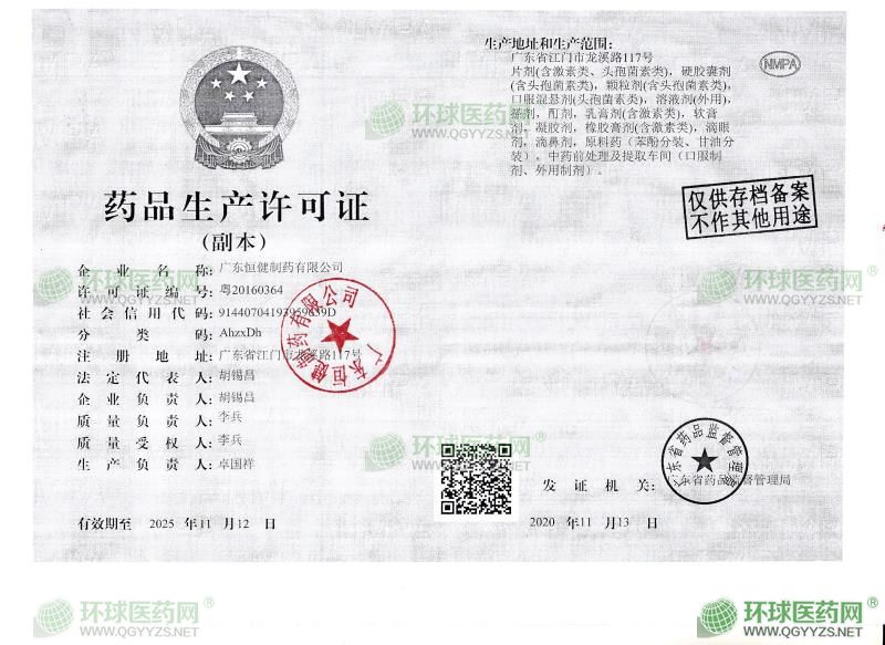 廣東恒健制藥有限公司是集生產(chǎn)藥品、醫(yī)療器械、化妝品于一體的國(guó)家級(jí)高新技術(shù)企業(yè),目前擁有片劑、膠囊劑、顆粒劑、軟膏劑、乳膏劑、凝膠劑、酊劑、搽劑、橡膠膏劑、溶液劑、滴眼劑、滴鼻劑、原料藥、藥用輔料等十多個(gè)藥品劑型120多個(gè)藥品品種及醫(yī)療器械、化妝品等。公司現(xiàn)有員工500多人。為多方位發(fā)展公司業(yè)務(wù),旗下還擁有廣東恒健日化有限公司及廣東華夏友美生物科技有限公司專門(mén)進(jìn)行化妝品的生產(chǎn)和銷售,與高校博士團(tuán)隊(duì)合作,重點(diǎn)開(kāi)發(fā)天然草本植物護(hù)膚類化妝品。