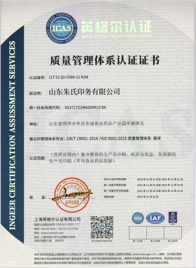 山東朱氏藥業(yè)工廠通過 ISO 9001+14001 雙認(rèn)證!產(chǎn)品質(zhì)量符合FDA標(biāo)準(zhǔn),出口無憂