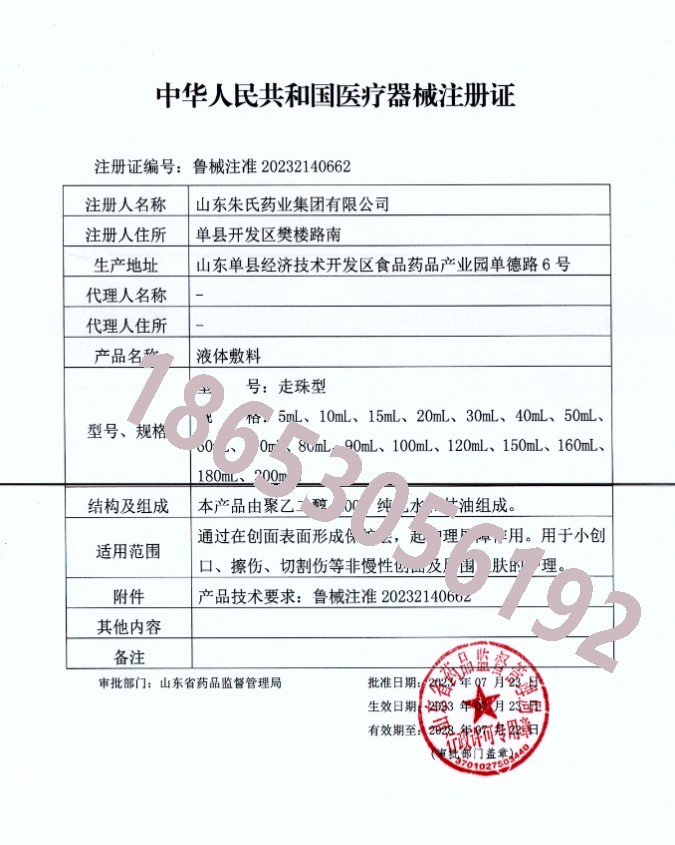 賦能皮膚健康!山東朱氏藥業(yè)集團(tuán)醫(yī)用液體敷料獲批醫(yī)療器械注冊證
