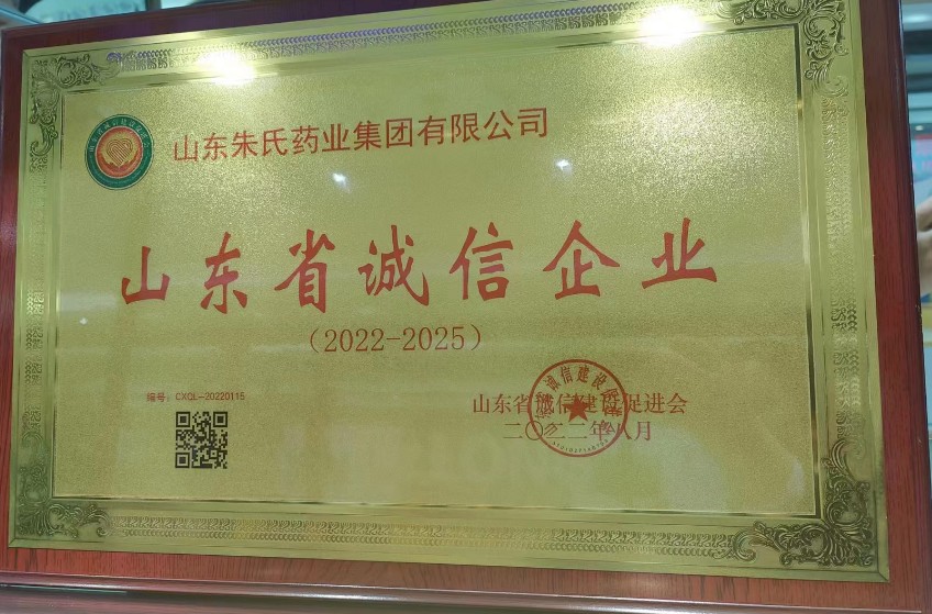 朱氏藥業(yè)集團榮獲“山東省誠信品牌企業(yè)”稱號