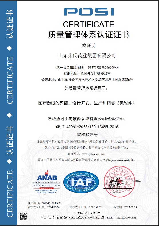 山東朱氏藥業(yè)集團(tuán)研發(fā)生產(chǎn)基地通過ISO13485認(rèn)證,樹立醫(yī)療器械級貼牌新標(biāo)桿