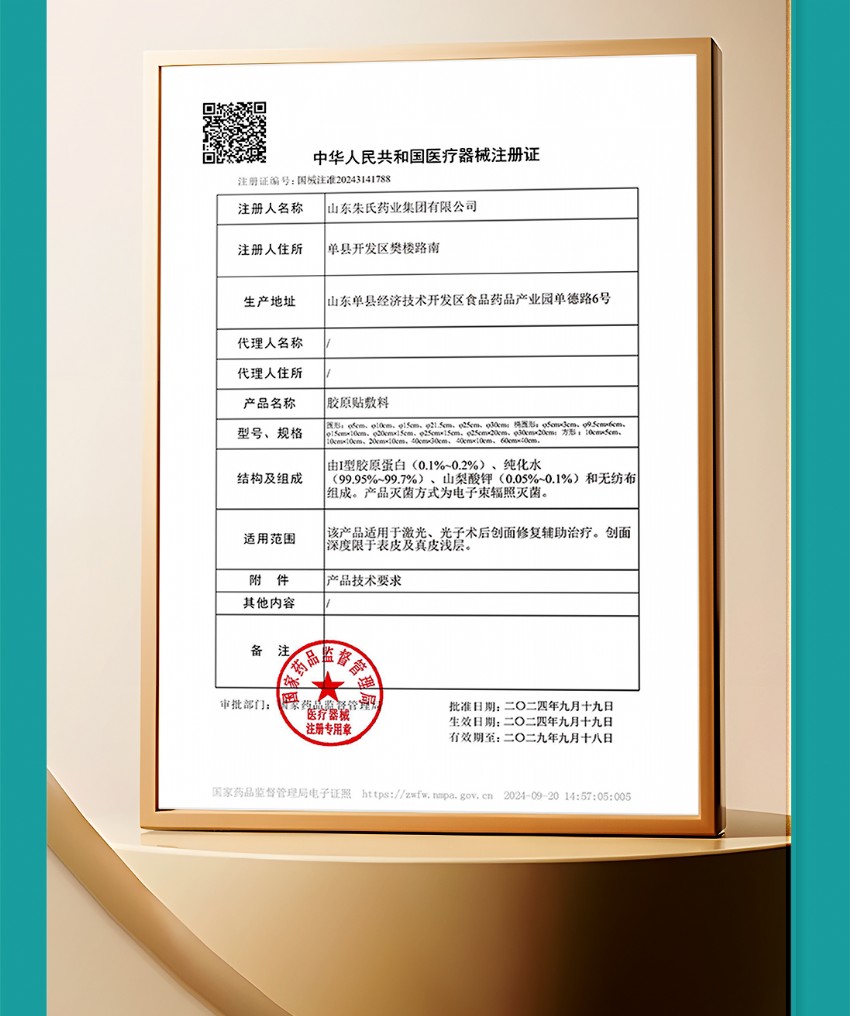 山東朱氏藥業(yè)集團(tuán)三類(lèi)械字號(hào)膠原貼以“*高合規(guī)等級(jí)+配方”硬實(shí)力,搶占千億級(jí)械字號(hào)敷料市場(chǎng)