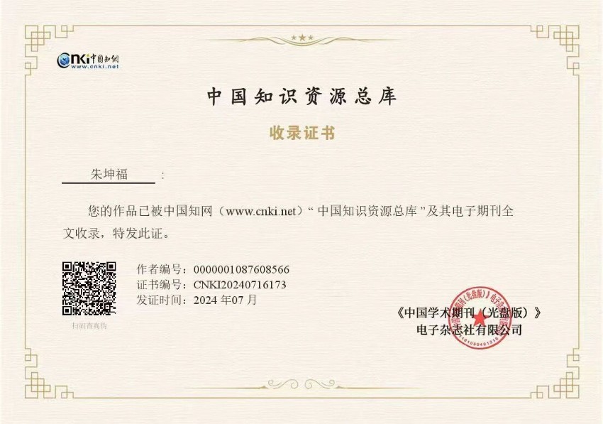科研積淀深厚:61 篇論文覆蓋多類核心期刊 據(jù) 中國知網(wǎng)《學(xué)者科研成果檢索報告》顯示,朱坤福先生累計發(fā)表論文共 61 篇,其中55 種期刊刊載的 60 篇期刊論文,總被引 310 次、總下載 33312 次,包含基金論文 7 篇、CSCD 論文 1 篇、中文核心期刊論文 18 篇,相關(guān)成果已獲中國知網(wǎng) “中國知識資源總庫” 官方收錄認(rèn)證。