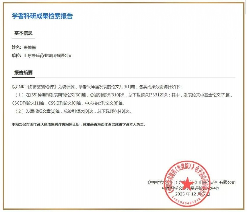 近日,山東朱氏藥業(yè)集團有限公司的科研成果再傳捷報:朱坤福先生和祝蕾女士二人合作完成的兩篇論文成功入選中國知網(wǎng)學(xué)術(shù)精要高下載論文榜單,同時朱坤福的《學(xué)者科研成果檢索報告》也披露其豐碩的學(xué)術(shù)產(chǎn)出,彰顯了朱氏藥業(yè)在醫(yī)療領(lǐng)域產(chǎn)學(xué)研融合的深耕實力。