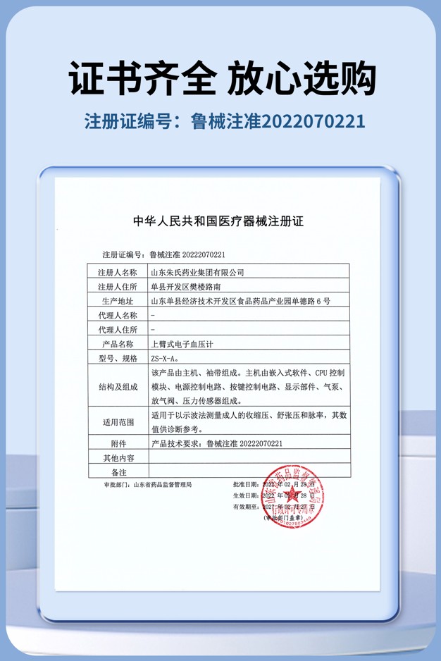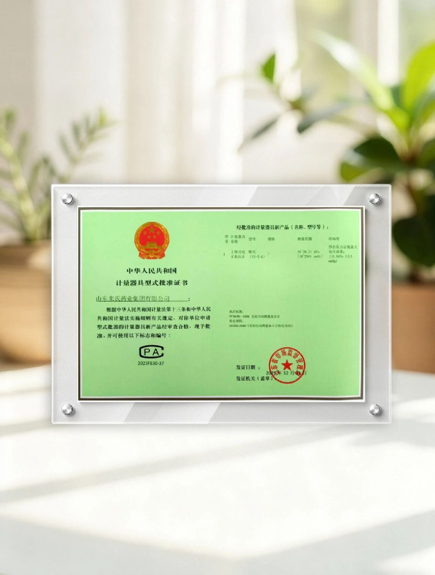 精準(zhǔn)守護(hù),權(quán)威認(rèn)證!朱氏藥業(yè)上臂式電子血壓計(jì)獲國(guó)家計(jì)量器具型式批準(zhǔn) --- 血壓測(cè)量,精準(zhǔn)是關(guān)鍵。家里備一臺(tái)可靠、準(zhǔn)確的血壓計(jì),是對(duì)自己和家人健康的基本守護(hù)。 今天,我們帶來一個(gè)重磅好消息:山東朱氏藥業(yè)集團(tuán)有限公司自主研發(fā)生產(chǎn)的 【上臂式電子血壓計(jì)(型號(hào):ZS-X-A)】,已正式獲得 國(guó)家《計(jì)量器具型式批準(zhǔn)證書》(CPA證書)! 這標(biāo)志著該產(chǎn)品在精準(zhǔn)度及可靠性上,完全符合國(guó)家法定要求,可以放心選購,為您的健康保駕護(hù)航。