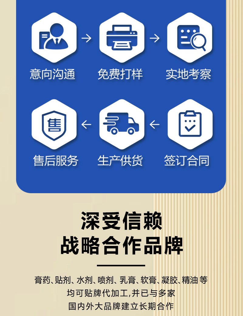 山東朱氏藥業(yè)膏藥OEM代加工從提供配方到產(chǎn)品送檢合格完成出貨,一般需經(jīng)過以下關(guān)鍵步驟: