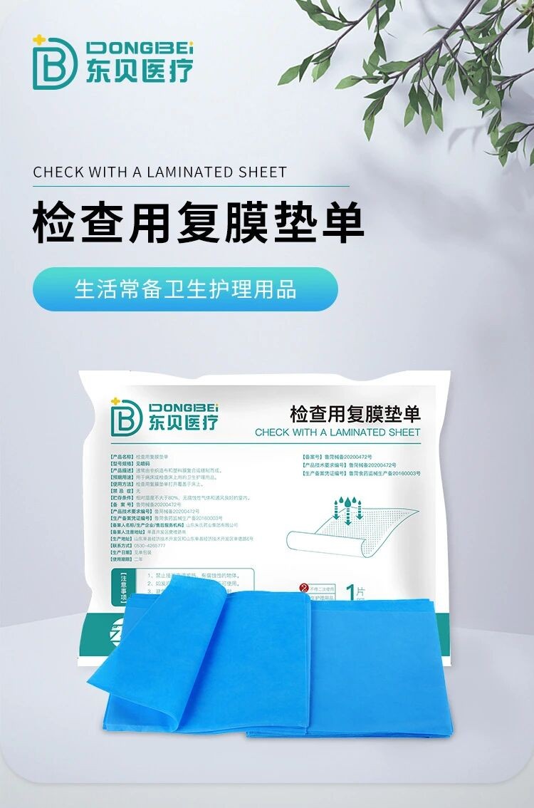 一“墊”多用,衛(wèi)生守護(hù) 東貝檢查用復(fù)膜墊單,雖然看似結(jié)構(gòu)簡(jiǎn)單,卻凝聚了醫(yī)療級(jí)防護(hù)的智慧。它由無(wú)紡布表層和防水PE膜底面復(fù)合而成。