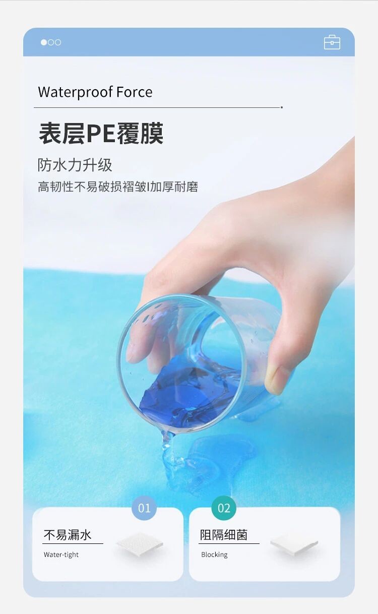 · 醫(yī)療機(jī)構(gòu)的好幫手: 適用于各科室手術(shù)、檢查中體液的隔離防護(hù),能有效防止液體滲透到床墊內(nèi)部,保護(hù)昂貴的醫(yī)療床面不受污染,從根源上杜絕交叉感染的風(fēng)險(xiǎn)。