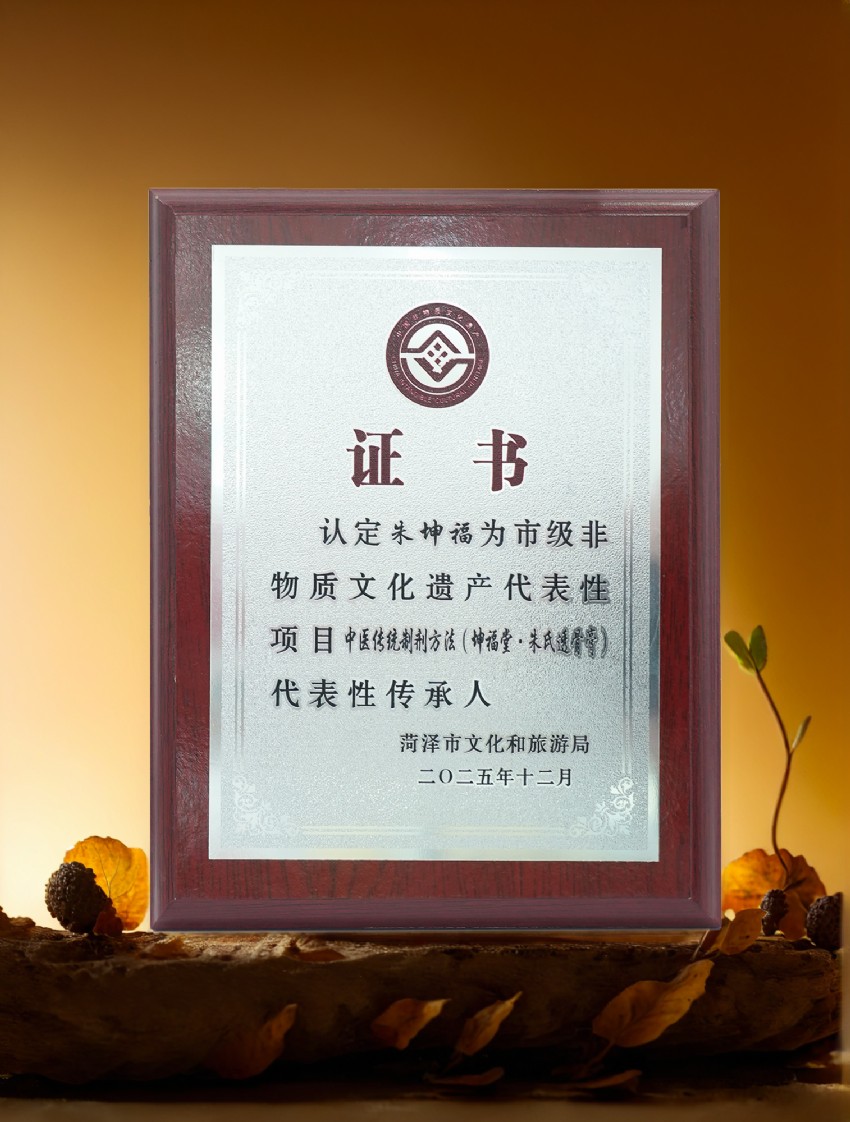讓我們共同向朱坤福先生表示熱烈祝賀!期待他在未來的傳承道路上,繼續(xù)發(fā)揚工匠精神,培育后繼人才,為弘揚菏澤中醫(yī)藥文化、推動非遺保護事業(yè)高質(zhì)量發(fā)展作出新的更大貢獻!