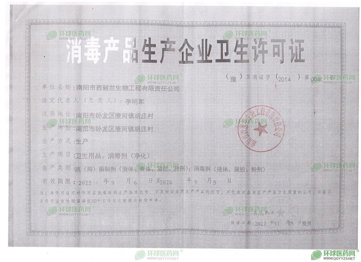- 消毒產(chǎn)品生產(chǎn)企業(yè)衛(wèi)生許可證